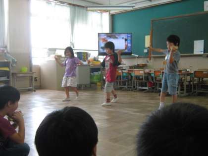 1年生は運動会で発表する「福西ちゃーびらさい」を体育の学習時間や朝の会に,がんばって練習しています。