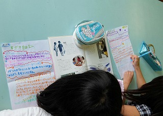 国語の「だれもが関わり合えるように」の学習で,調べ学習を行っています。今日は図書室に行って,「点字」や「手話」,「ユニバーサルデザイン」などについて調べ,発表するためのメモをとりました。