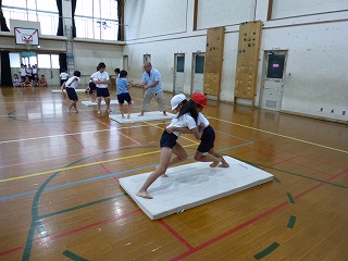 第20回「ふれあい子どもすもう大会」にむけて,休み時間に体育館で,すもうの練習をしました。