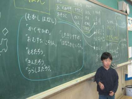 1年生は1組は「トラと干し柿」を、2組は「コンブとノルブ」の読み聞かせから韓国・朝鮮と日本の関係性や共通点について学習しました。