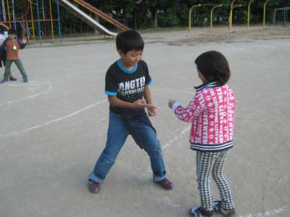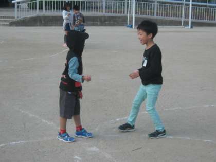 1年生のペア学年は4年生です。今日は「どん・じゃんけん・ほい」をしました。遊びの中から学年を越えてみんなで笑顔いっぱい仲良く楽しむことができました。