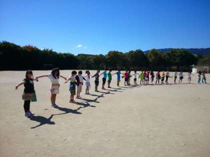 理科では太陽の動きについて学習しています。太陽といえばセットで考えられるのは影ですね。人と接触せずに、また人の影を踏まずにクラス全員の影をつなぐことができるかチャレンジしてみました。
