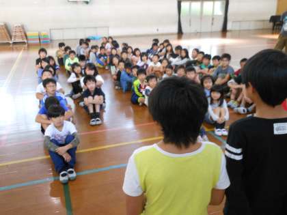 今日は秋晴れの中,後期から月1回で始まった「たてわりあそび」をしました。掃除時間をカットして,5年生と体育館でドッジボールをしました。5年生は2年生にボールを渡す,利き手で投げない,など2年生に優しいルールを考えてくれました。