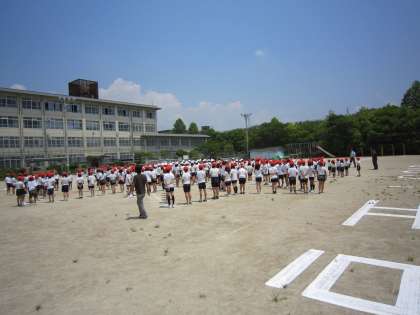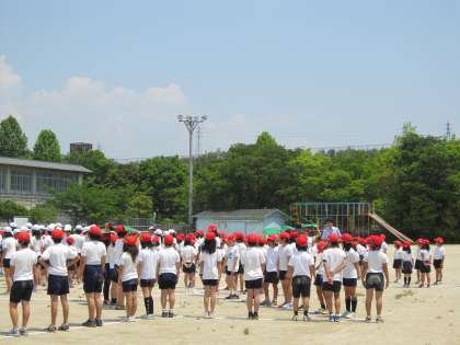 6月3日(木)創立30周年記念事業の一つとして航空写真を撮りました。1〜6年生まで校章の形に並んで写真を撮ってもらいました。どのように写っているかはあとのお楽しみです。
