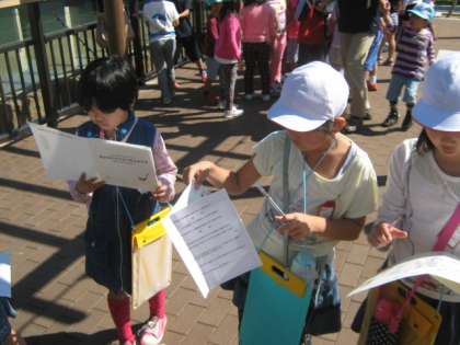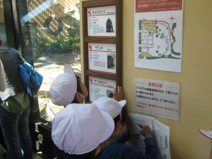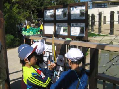 動物園ではグループごとにクイズラリーに出かけます。