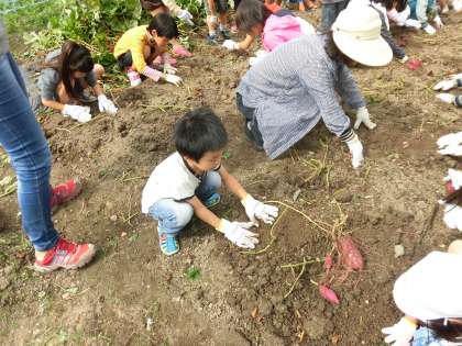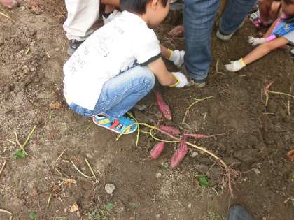 生活科の交流でさつまいも掘りをしました。どんどん出てくる紅色のお芋さん。おいしそうなさつまいもを食べる日を心待ちにしています。