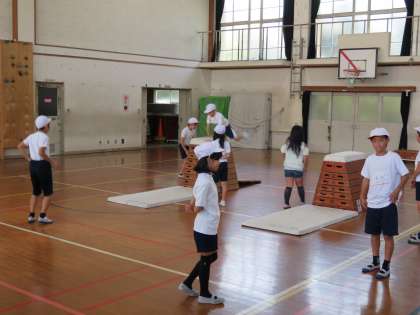 久しぶりのとび箱だったので,少し跳ぶのが怖かった子もいたようですが,班でお互いに見合いながら学習することができました。