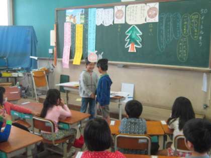 1年生は道徳の学習を参観していただきました。“みんな なかよく”ということをテーマに「ゆっきと やっち」という読み物を使って友だちとのかかわり方について学習しました。