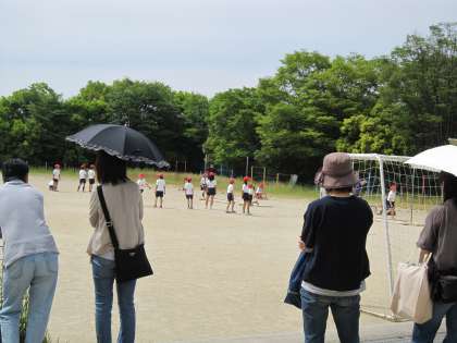 6月6日の日曜参観では,体育,算数,音楽の学習を見てもらいました。算数では,小数の計算のところを見てもらいました。そして,体育では走り高跳びの様子を見てもらいました。おうちの人の前でいつも以上に張り切っていました。