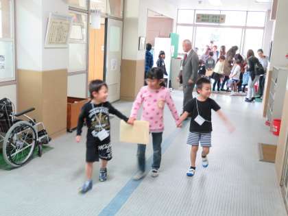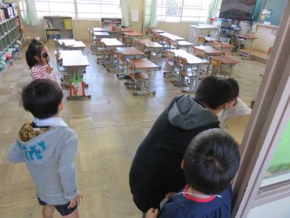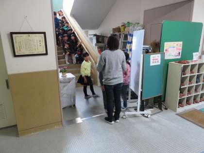 5年生はこの日,来年度入学してくる新1年生の健康診断のお手伝いをしました。お兄さんお姉さんとして,優しく手をつないで各教室へ案内をすることができていました。