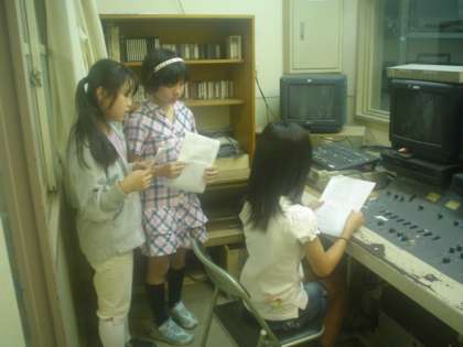 読書週間(6月8日〜14日)中,図書委員が考えた「図書館クイズ」を給食時間に放送しています。写真は6月9日の放送中の様子です。「はだしのゲンの主人公ゲンの家はなぜなくなったのでしょうか。」「『かいけつゾロリ』の作者は誰でしょう。」などの本に関係のあるクイズが出されています。