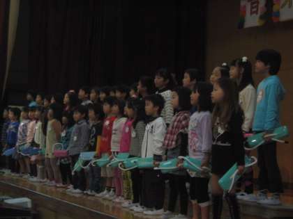 発表後は、他の学年の発表をきちんと聴くことや全校合唱をするができました。