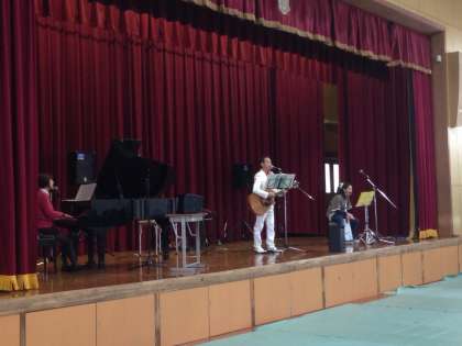 西陵中学校にて「道徳と人権を考えるコンサート」がありました。カウンセラーの古川秀明さんの講演会でした。お話だけではなく,歌に「生きることの大切さ」をのせて教えていただきました。