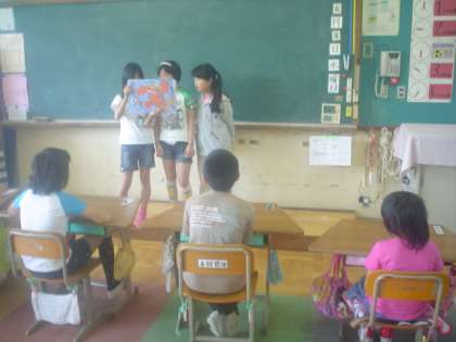 6月10日(木)読書週間で読み聞かせをしています。この日は,つくし学級で「うまかたどんとたぬきのポンタ」を,2年2組では「まほうつかいとねこ」を読み聞かせました。みんな真剣に聞いていました。