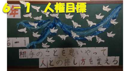 また,人権集会もありました。児童会が司会進行で各クラスで話し合った人権目標の紹介がありました。
