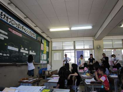 6月16日(水)5校時全教員が2年1組の算数の学習を見せてもらいました。子ども達は問題文から何算にするといいのかをテープ図をかいて考えていきました。自分の考えをみんなにがんばって伝えていました。