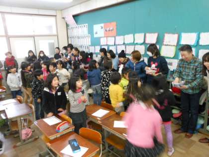 今日はひさびさの5年生とのたてわり遊びでした。今回は室内でトランプや,ぼうずめくりなどグループ毎に別々の遊びを選んで楽しみました。何度となく5年生と遊んできたため,抵抗感なく一緒になかよく遊ぶことができていました。