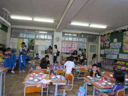 6月22日(火)に1年生の保護者を対象に,PTA保体委員会主催の給食試食会が行われました。この日は,金井栄養教諭から給食について話を聞き,その後1年生の給食の様子を参観,保護者も給食を試食しました。参加された方から,「おいしかった。」という感想を聞きました。