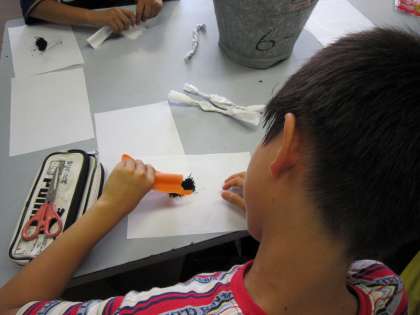 科学クラブでは,いろいろな実験をしています。この日(6月28日)は,鉄粉を燃やして,花火にする実験をしました。みんな興味深く見ながら実験をしていました。