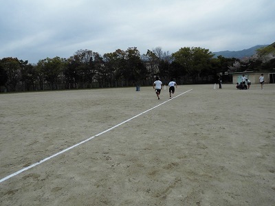 今日は,6年生として初めての体育を学年で一緒に行いました。種目は50m走です。5年生のときよりタイムが速くなっている子もいれば遅くなっている子もいたようでした。みんな一生懸命走っていました。