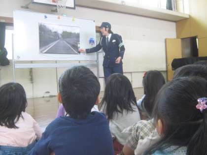 1年生は今日、西京署の方と交通推進委員会の方等にお世話になって交通安全教室に参加しました。