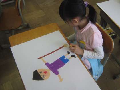 1年生は今日初めて図工の学習をしました。
