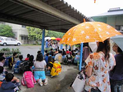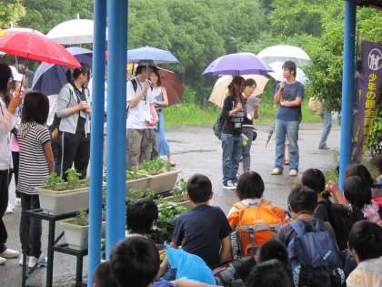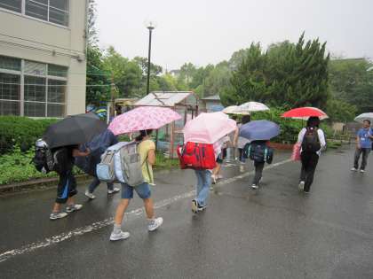 7月3日(土)の朝,5年生は出発式をしました。式の中で,「けがのないように5日間を楽しみましょう。」と学校長が話しました。そのあと,ボランティアの紹介をし,午前8時50分に出発しました。