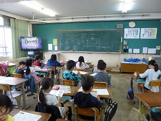 自転車教室にむけて資料を基に教室で学習した後,体育館で警察の方から自転車の安全な乗り方について教えていただきました。