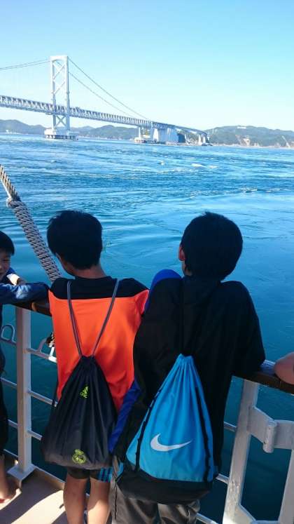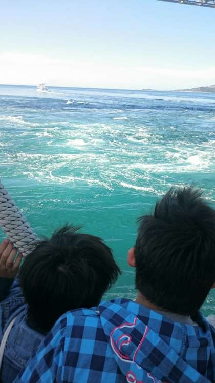 天気も良く,渦潮がとてもはっきりと見えました。大きな渦ができるごとに「うおーっ」と歓声があがりました。迫力満点でした。