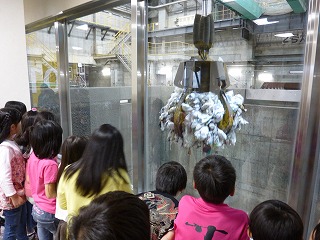 京都市青少年科学センターに行った日の午後は,北部クリーンセンターに行きました。とても深い穴の中にゴミを一旦ため,そこから巨大なクレーンでごみを運ぶ様子を見学したり,環境問題に関するビデオを見たりして学習しました。