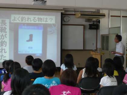 6年生を対象に行われた携帯電話教室。携帯電話の正しい使い方を教わりました。また,携帯電話のメール機能やウェブ機能を悪用した事例も聞いて,絶対に間違った使い方をしないということを約束しました!