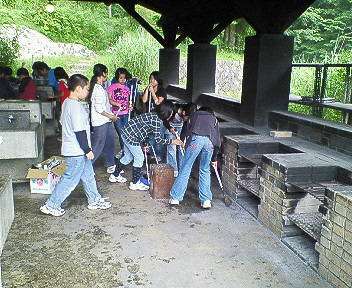 さあ美味しかったバイキング料理のあとは,来たときよりも美しく!みんなで後片付けです。てきぱきとやっていました。