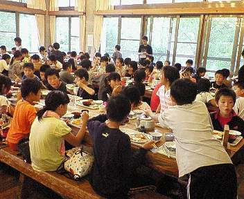 花脊山の家での最後の夕食です。今日の一日を振り返りながら楽しく会話しながら食べていました。