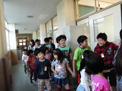 6年生のお兄さん・お姉さんに手を引かれ、1年生は体育館へ・・。