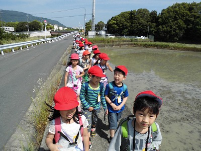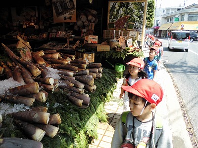 道中、福西学区ではなかなかお目にかからないものがたくさんあり、「うわぁ、田んぼやー」「先生、カメがいるよ!」「たけのこが売ってるー」といったキラキラした声があちこちから聴こえてきました。