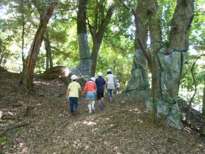 向日神社では,プリントに写っている場所を探していくラリーをしました。グループみんなで隅々まで歩きまわって,ほとんどのグループが全て見つけ出すことができていました。