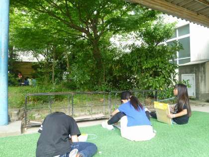 木の枝の生え方や幹の模様,葉っぱの形など,実際の木を観察しながら見たものをそのまま描く練習をしました。