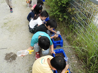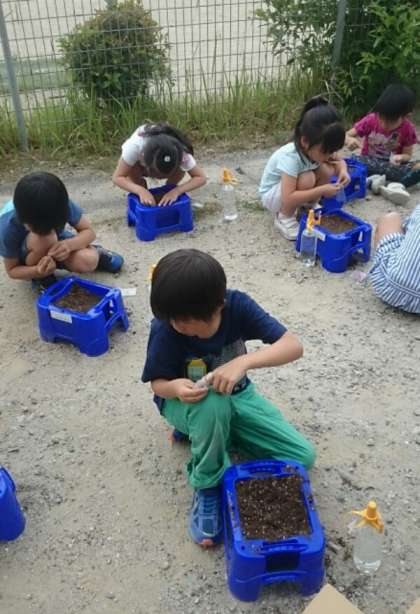 「いつ、花が咲くのかなぁ」「“もとひ”が無いとどうなるのー?」といった声があちこちから聴こえ,興味をもって育てようという気持ちがとても伝わりました。