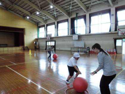 日曜参観の2時間目は体育館で,しっぽとり,大玉ころがし,サーキット運動などを楽しんですることができました。