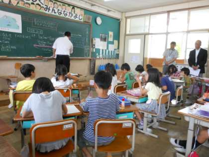 今日は2年1組の研究授業でした。長さの学習を全校の先生に見に来てもらえました。みんな少し緊張しながら,熱心に長さが足し算を考えていました。授業の最後まで集中して立派でした。