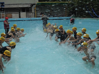 しっかり説明を聴いたあとは,いよいよプールに入水です。