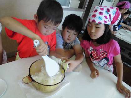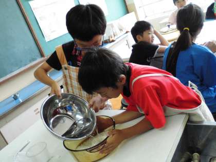 みさきの家では,野外炊事でごはんを炊いてカレーライスを食べます。その事前学習として,家庭科室で鍋を使ってごはんを炊きました。小さな米粒が白くふっくらとしたごはんに変身!おいしく炊き上がったごはんでおにぎりを作って食べました。みさきの家でもおいしいごはんを炊けるといいですね。