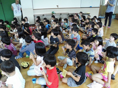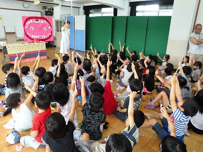 今日の5時間目は歯磨き巡回指導があり,学校歯科医さんと歯科衛生士さんが来られました。また,特別ゲストの“ぱっくん”もやってきました。