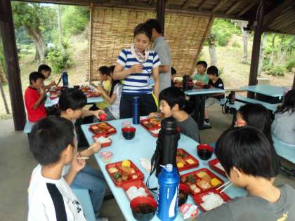 入浴の後、夕食です。魚フライとミートボールがメインでお味噌汁付です。デザートは、りんごゼリーです。