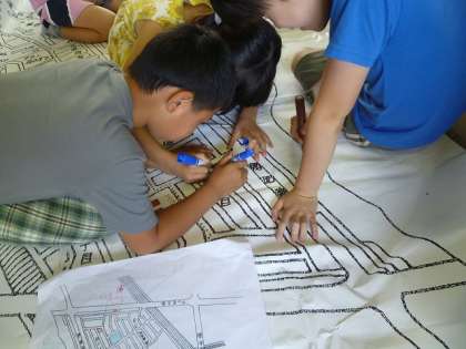 校区たんけんをして,自分達で大きな校区地図を作りました。