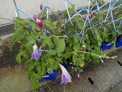 1年生が春から育ててきたアサガオの花が先週よりも咲いています。