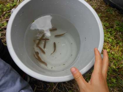 釣りグループは,少し離れた場所で上流部に棲むアブラハヤやカワムツを釣りました。