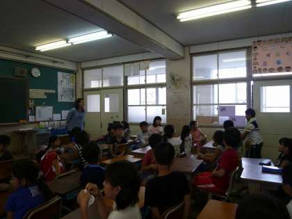 英語でマルタ先生の家族のことや趣味など,いろいろなお話を聞きました。質問タイムでは,積極的に手を挙げ,マルタ先生との会話を楽しんでいました。また,英語で質問にチャレンジする児童もいました。