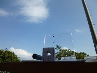 理科の学習で「月の観察」をしました。CDケースで観察するための装置を作り,運動場に出て月の方位と高度を記録しました。