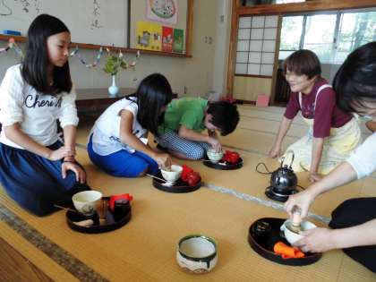 第3回目の「お茶」教室を行いました。これまで教わったことを生かして実践し,今月のお菓子「銀杏」と自分でたてた「お茶」の味わいを楽しむことができました。次回から「お花」の教室が始まります。